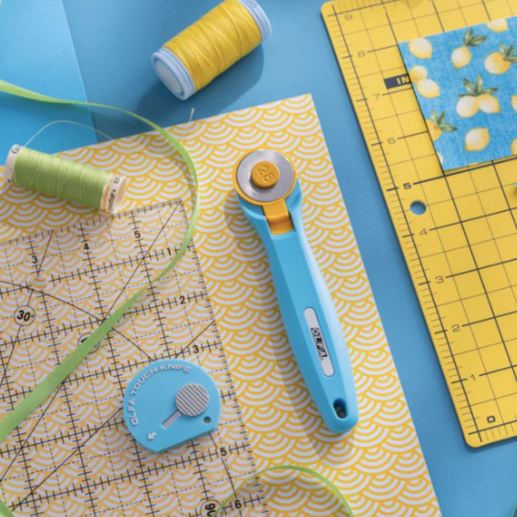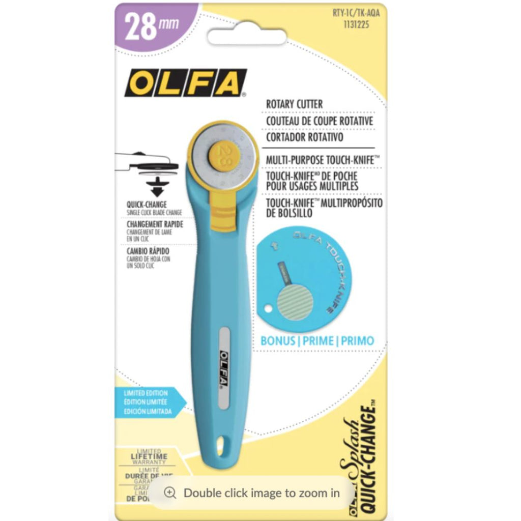 The OLFA 28mm Quick-Change Rotary Cutter is a compact, high-precision cutting tool designed for quilters, sewists, and crafters who value accuracy and ease of use. Featuring a sleek Aqua handle, this rotary cutter is ideal for making clean, detailed cuts through fabric, paper, and other crafting materials. Its 28mm blade size allows for tight curves and intricate shapes, making it a go-to tool for pattern work and fine detailing.